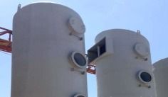According to the work environment of the purification tower components are used resins with good alkali resistance and high structural strength. The tower surface uses waterproof, anti-aging gel coat resin. In order to enhance the tower strength the tower body shell is made of several longitudinal reinforced plate. Depending on various types of body sizes forms integrated structure based on the combination of cylindrical body segments and fragments. Due to long-term work in the acid environment of corrosive gas the purification tower bears not only the tower body pressure and solution pressure, but also the pressure at work (fan total pressure in 200--250mm H2O). It requires all FRP components have good corrosion resistance, high tensile strength, high pressure resisitance. Therefore, we are in full consideration of the strength reduction factor and discreteness ofhand lay-up process under strong corrosion according to tower structure and environmental features and ensure the entire FRPcomponents still have good performance even in the worst working conditions.