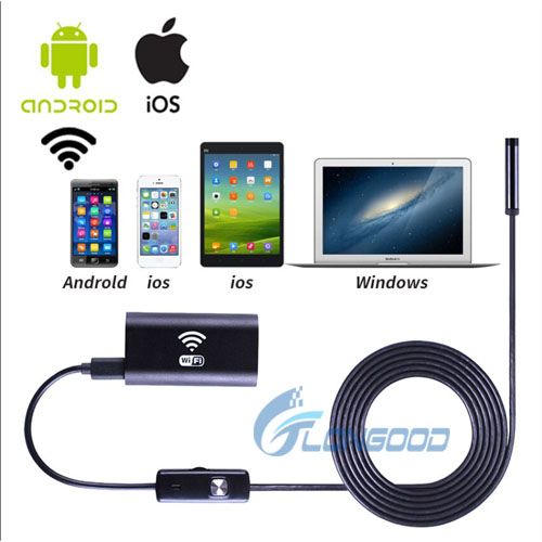 | Product Description: This item is new newest wifi endocope camera, it can work with Android and IOS mobile device. You just need install the APP, then do wifi connection with the endoscope camera, then you can check the image. It has 6leds and the brightness is adjustable. It can be used for underwater camera, waterproof Micro-cameras, motor vehicle detector, sewer pipeline detector, search and rescue, criminal and custom detector, archaeological detect, the PCB detection, aviation and space industries, care and tractors industries, petroleum drilling industries, constructions and so on. Main Feature: Brand New and High Quality 2M Pixel High Resolution CMOS Camera, HD 720P Wireless Wifi Connection, easy to connect and use Mini Size and Light weight for portable use 6 Led Lights, brightness adjustable IP67 Waterproof Design Compatible with iOS/Android/Windows/Mac System Come with sucker, easy to mount the wifi box on the back of phone or other place with flat surface Wifi box has built-in 500mAh battery, can work for 45 minutes, Charge via 5V power Support photo taking and video recording on mobile phone Specification: Cable length: 1/1.5/2/3.5/5M Camera head OD: 8mm Lens:2M Pixel CMOS camera, 6leds Resolution: 640*480, 1280*720 Waterproof Level: IPX6 Frame Rate: 30FPS Viewing Angle: 70degree Transmission distance: Within 5-30m Effective Focal Distance: 4-6cm (The best viewing distance) Battery Capacity: 700mAh System Requirement: iOS/Android/Windows/Mac |