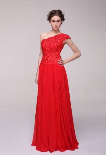 串珠蕾丝单肩晚礼服(EDZ15)