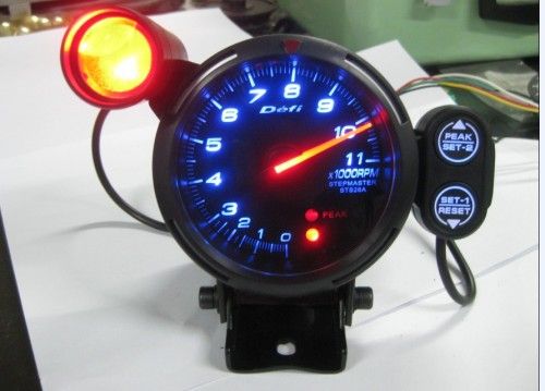 BF series tachometers are electronic blacked out gauges which feature high response and refined design. When the car is off they display a flat black face. As soon as the car is turned on, the gauges light up and are in full affect. This tachometer is 80mm in diameter with white back lighting and an 11000RPM range. Features: -Brightness adjustment: 11 stages of brightness, 5 stages in the daytime and 6 stages at night. -Wide-angle scale is used at the idling range 0~3, 000RPM. -The scale is fitted to recent engine power band and linear scale is used from 3, 000RPM to 11, 000RPM. The scale is compressed to acquire great visibility and ease of use. -Dual warnings of light and buzzer-Two customer-defined warning RPMs can be set. -When the RPMs are exceeded, the warning LED blinksghts up and the warning buzzer sounds. -The exclusive large-sized indicator which lights in green and red enhances the visibility of warnings in addition to the warning LED in the gauge. -Peak memory function-Detachable switch unit-The gauge is clinched by using the exclusive mounting band and back case. Wires can be stored in the back case neatly. -By having the Defi rev adapter built-in, the tachometer works on vehicles with DIS (Distributor-less Ignition System)-Regular Position Bezel for 80mm (3 1/8') gauge is included in the product.roduct. Gauge operation voltage is 12 Volt. You will receive the product exactly the same as Picture shown. Installation instruction are included.