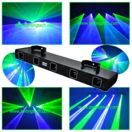 Feature The five tunnel red and green laser, the beams are compages, more than 100 laser patterns, over 300 laser effects, such as wave, tunnel, circle, dots, etc. Green and Red laser beams can be shown one by one from four apertures, or scan separately towards different direction on systematic procedure. Advanced design program. Beautiful aluminum housing. Beautiful design to make the laser light loved by people.