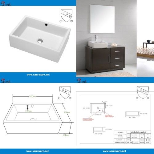 CUPC New Design Rectangular Ceramic bathroom art basin(SN104)