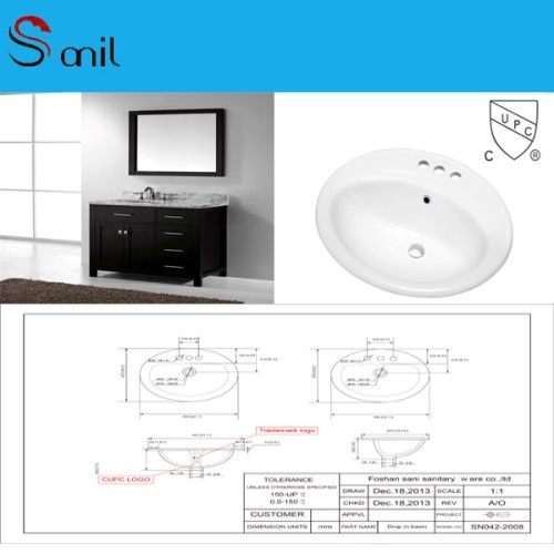 Big Size Ceramic white Drop In Bathroom Washing Vanity sink(SN042-2008)