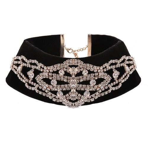 Fashion Vintage Velvet Designer Rhinestone Diamond Choker Necklace Jewelry