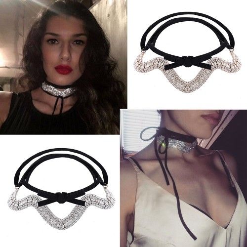 Fashion Pu fabrics velvet geometric diamond rhinestone glittering choker necklace Jewelry