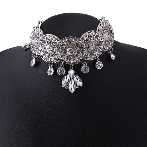 Fashion vintage hollow rhinestone glittering pendant diamond choker necklace jewelry