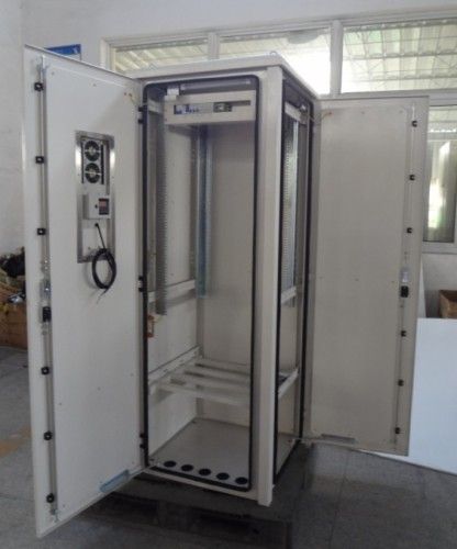 Features: IP65 outdoor cabinets with A/C _ The cabinet adopt the double wall type design. It is composed with main body, roof, the rear panel, the side panel and the base. _ The double wall type rear panel, the dual side panel, the bolts are fixed by inside. The double wall type gate has the bikini fixing device, after closes the gate not to be able to see the bolt from outside. Leans the kneading board to cover the cabinet and the Foundation, eliminated entered the cabinet by the compulsory measure weakness. _ Inside and outside side kneadingboard (spacing 25mm) the band provides ventilates the channel, supports the cabinet internal heat change and may reduce the sunlight illumination the infIuence. _ The roof panel has the rain awning with the size all around stretches out 25mm and 75mm high. Which have the integrity well ventilated to clamp the trough and ensuring the exchanging of the gas. _ The base may use the entire block or divide three parts of sealed panel to seal. _ The cabinet can adopt 19 inch structure to install, It can install the mounting panel or according to the custom design also. _ The natural wind cooling. The cabinet can be installed fans on the top cover and punched the hole with dust proof cover at the bottom of two sides. _ Protection Degress: : IP55 _ We can design the structure as the customer requirement. Standard and Material: Comply with GB/T 19183 and IEC 61969. Surface Treatment: Degreasing, phosphating, powder coating. Material: Cold rolled steel or stainless steel Color: RAL5012(Top cover and base); RAL7035(The others)