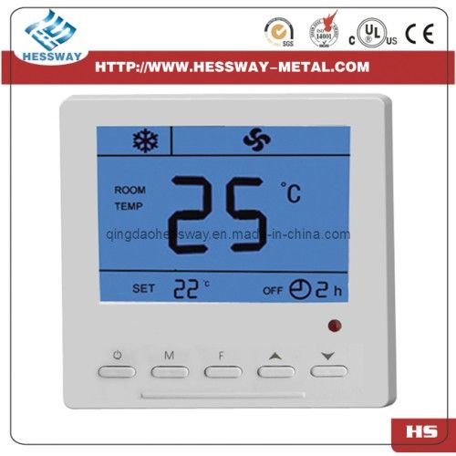 HS-W301 Electric room thermostat is featured by unique design and simple operation. Super-luxurious appearance, LED backlight touch keys as well as LCD display showing the room temperature, setting temperature, fan speed and time. It controls the fan speed or electrical cool and heat valve switch and ideal for places installed two or four pipes central air-condition.