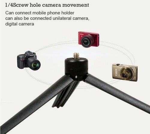 Descriptions: Mini Tripod for Camera can to set up your webcam on your desk or your camera just about anywhere. Mini Tripod RK08E for camera, also can connect selfie stick RK908 The Tripod is easy to carry and fits into almost any pocket or bag. Fits most cameras/digital cameras/mobile phones, and webcams with a tripod socket. Non-slip Rubber Feet.