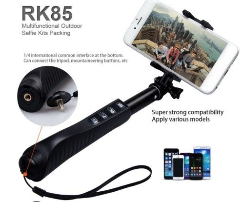 Descriptions: 1.mountain climbing lovers must buy Bluetooth Selfie Stick Monopod 2.the carabiner design is practical for climbing lovers , which is usful to hang on bags and trousers 3.light weight aluminium alloy material 4.turn to lock 5.bluetooth control 6.suitable for sports camera 7.all in one design 8.removeable zoom Bluetooth handle 9. Multi-functional universal all-in-one phone holder (suitable for for sports camera mount, international 1/4 screw mount can match all kinds of monopod) 10. RK88 contains a high Performance led flash which can be used for lacking brightness situations. Such as night, rainy day, KTV, bars 11. high Performance mini tripod 12. rearview mirror for rear camera to control the image 13. long size screw & international 1/4 screw adapterapterapter 14.wide angle lens Specification: Model: Bluetooth Selfie Stick Monopod Total weight: 280g Max load: 500g Folded length: 220mm Stretched length: 850mm Full power can stand by 100 hours Charging time: 1hour charging voltage:5v Stand-by time: above 100 hours Working times: more than 500 times