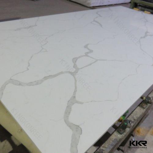 Carrara White Quartz Stone, Engineered Artificial Quartz KKR Quartz Stone Details: ========================= 1) Component: 93% quartz crystal fine powder + 7% resins, pigments 2) Standard size: 3000mm * 1200mm, 3000mm * 1400mm, 3000mm * 1500mm, 3200mm * 1600mm; 3) Thickness: 12mm, 15mm, 18mm, 20mm and 30mm (min. 12mm; Max. 30mm) 4) Colors: More than 60 colors for choice; Can match colors according to your samples 5) Application: Flooring, wall panel, tabletop, vanity top, countertop, worktop, window sill... 6) Certificate: SGS & CE & ULE & UL ULE & UL 7) Samples: Supply for free, 100x100mm KKR Quartz Stone Features: =============================== 1) Scratch resistant 2) Anti-pollution 3) Resistant to elevated temperatures (melting point is up to 1300 ° C)g; C)g; C) 4) Nonpoisonous and non-radiation 5) Very hard surface without any pores 6) Aging resistant 7) Acid-proof and alkali-proof 8) Color no fade KKR Quartz Stone Quality Checking: ================================ KKR assure check quality piece by piece before loading, including color control, thickness control, and full size control, surface finish control. Four steps checking by our experienced QC, also accept customer's full inspection. 1. Check the raw material before producing. 2. Check the products during producing. 3. Check the goods after production. 4. Check the good during loading KKR Quartz Stone Packing & Loading:ading:ding: ======================================= Seaworth packing, safe for shipping, EO standarded packing material environmental. 1. For 1.2cm thick, 20ft container loads 175pcs. 2. For 1.5cm thick, 20ft container load 140pcs. 3. For 2cm thick, 20ft container load 105pcs. 4. For 3cm thick, 20ft container load 70pcs. More Informations: =================== 1) Payment terms: By T/T or Western Union. 30% deposit in advance before production arranged. 70% balance payment before delivery from factory. 2) Package: PET cover surface first + L shape wooden pallet + steel strengthen outside. 3) Lead time: Within 20 working days for one 20ft container after deposit. KKR Quartz Stone Slabs Factory Show: ================================ Kingkonree specialized in making artificial quartz stone for more than 15 years, and our producing way is one of the best in China, we can make sure the quality of every sheet. 1. Experienced workers, max standard size can be 3200x1600mm 2. Advanced machinery and equipment, and we update the machine constantly 3. All sheets made by KKR are SGS/CE approved, exported to 107 countries already Any demand on KKR Quartz Stone. Welcome contact !