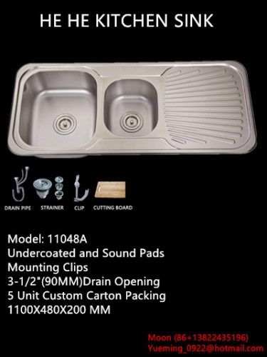 Spec.: 11048A topmount double bowls with board , sus304 material 20 gauge stainless steel kitchen sink