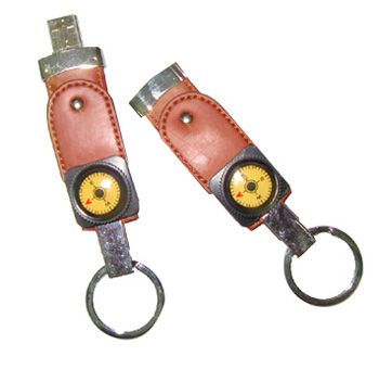 Compass USB Flash Drive Leather Swivel Pen Drive Flash Memory
