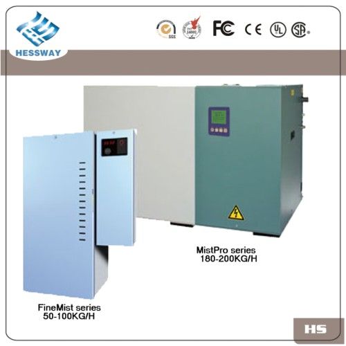 Leading technology The world's only electrode humidifier that 32-bit low-power micro-processing chip; The world's only electrode humidifier controller that uses neural networks and artificial intellingence algorithms; The world only electrode humidifier that supports WIFI communications for monitoring and controlling networks; The world's only built-in micro-chip in cylinder for intelligent cylinder working process control; The world's only electrode humidifier who has high-grade electric leakage protection function; The world's only super-cleaning functioned electrode humidifier; working principle Integration of high pressure micro fog using a built-in imports of high-pressure plunger pump to produce 50 bar high pressure water, and shot into the air, through a special nozzle under waft fan, spread to the distance. Jet out of the water mist particles are very small, and can reach 5-10μm, very easy to be absorbed by the air, to obtain good effect of humidification.ion.ion. Suitable for use in air conditioning box, air duct, workshop, warehouse, etc. Features Micro fog nozzle can produce 5 billion tiny particles per second. The grain diameter is only 1-15 microns, easier for heat exchange in the air, humidification and cooling effect. Humidifying 1 kg of water consumption of electrical energy 4w to 6w, is the most energy-efficient. Adopt imported plunger pump, can be continuous non-stop running, low maintenance cost. Pressure protection device management system, control system is easy to perceive. Water system is fully enclosed, won't produce bacteria. A humidifier for multiple environments for independent control and regulation. The intelligent control system, can take the control of switch type, also can use ratio of the analog signal control.