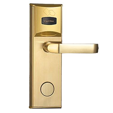 Modern Stainless Steel Golden High Security and Safe Electronic Card Lock with Mortise (L512-M)FEATURES: Stainless steel with surface plating plus PVD treatment. RFID MIFARE® Technology, 100, 000 times write life for keycard, contactless reading keycardycardycard ANSI mortise Free-engage while locking Powered by AA battery, easy replace new Openings 20, 000 times for one new battery pack Audit trail records the latest 800 lock transactions. Low Battery Voltage warning (beep and red light) Passage mode activate by passage card for meeting case Do not disturb (DND) function for hotels: While thumb turn is on from inside, the lock will refuse the keycard outside by show red light Panic release function: The deadbolt and latch are automatically retraced by inside handle shaking to easy egress when emergency happens 40mm-50mm thickness door Each hotel lock equipped double clock, control the guests check-in and departure time accurately, Make your management of rooms easily. SPECIFICATIONS: Power: LR6 (AA)battery X 4PCS Low power alarm voltage: 4.8V Communication: 13.56MHz RFID (with keycard)/infrared (with Handheld) Card support: MIFARE® S50 plus S70s S70s S70 Working Distance: 45mm Max Working Temperature: 0-60° Ceg; Ceg; C Working Humidity: 15~85%RH Static current: < 30uA30uA Working current: < 150mA50mA Memory: 800 Transactions include Time/Date/Card ID/Card type/Room ID Gross Weight: 3.1KG Package: 10PCS/Carton at 74.0X42.0X32.0CM Content: Front/Back panel, mortise, cylinder, keyx2, battery-pack, manual/Strike (no battery included, no card)