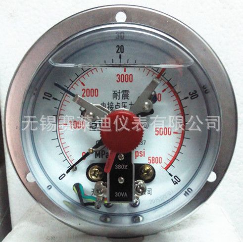 耐震电接点压力表具有抗介质脉动和冲击载荷, 耐环境振动等优异特性, 适用测量对铜和铜合金无腐蚀性的气体, 液体或蒸汽等介质的压力测量和控制, 仪表设上, 下限缓行接点开关 (可选双上限或双下限接点开关) , 在压力达到设定值时发出开关信号或控制电路启动; 停止, 供自动控制系统控制或报警用. 其抗振结构可有效抑制指针的抖动, 冲击, 保护接点, 使仪表指示清晰, 电信号切换可靠, 工作稳定. 广泛应用于机械, 化工, 石油, 冶金, 电力等工业生产过程压力测量和控制.