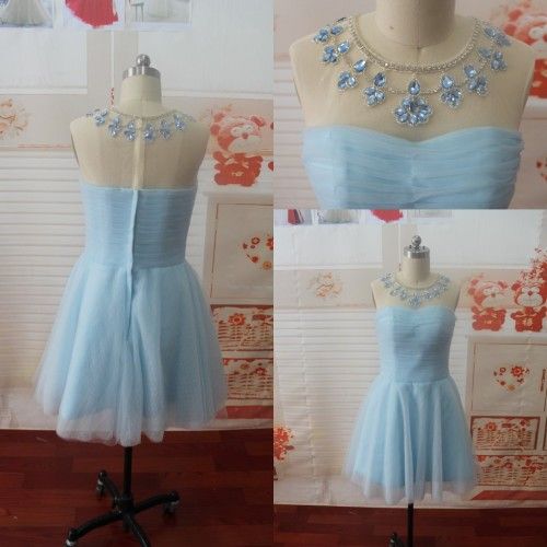 Real Photo Beads Tulle Zipper Homecoming Dress (SL935)