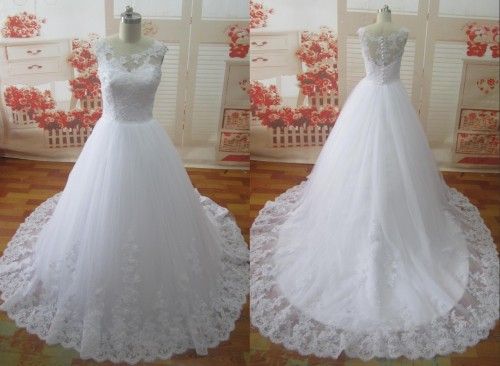 Lace Zipper Applique Real Photo Wedding Dress (SL109)