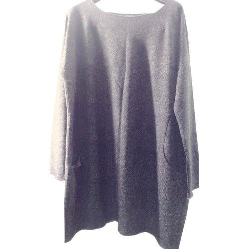Round collar edge,cuff and bottom are all raw material edge with matching coverstitching,front cutting,two slit pocketsLoose and long shape.