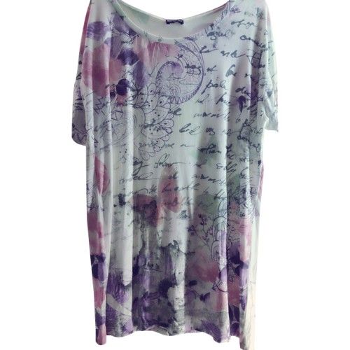女士时尚休闲针织T恤100%模式面料制成,整体水混淆特殊效果印刷,但柔软的手感,中长款式,cmfortable佩带和休闲宽松造型。
