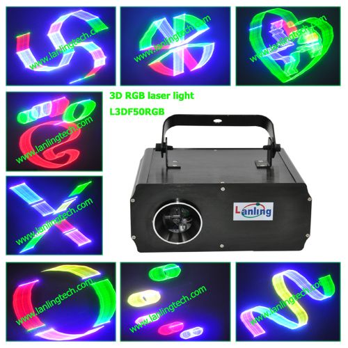 2013 Hot 3D RGB Laser Stage Lighting for your Party-L3DF50RGB Lanling RGB Full Color 3D Laser Light show DJ lighting Feature 1. Smooth, compact and exquisite aluminum housing. 2. Pre-programmed with over 50 different animations, real live 3D effects. 3. Four functions: Auto, Sound Active, DMX512 and Master/Slave. 4. In Sound Active mode, the unit will shut off when the music stops. 5. Under DMX mode, this light supports pattern selection, color change, X/Y moving, dimmer, rotation, zoom in/out, drawing and rolling. Scanning 15kpss High-speed optical scanner, big angle scanning (0 to 30° )eg; )eg; ) Laser Red: 200mW 650nm Green: 50mW 532nm Blue: 150mW 450nm Play Mode Sound Active, AUTO-Beam, AUTO-Animation, DMX512 (11 channels), Master/ Slave Interface 3 pins XLR jack for DMX or Maser-Slave linking Power Supply Bi-Voltage 110V to 220V-250V, 50/60Hz, 30W Net Weight 3.2Kg Gross Weight 3.8Kg (inner box), 16.2Kg (outer box) Volume Weight 4.9Kg (/5000) or 4.1Kg(/6000), each inner box 19.4Kg (/5000) or 16.2Kg(/6000), each outer box Inner Box 340*270*193(0.018m³ )sup3; )up3; ) Outer Box (560*355*411(0.082m³ ), 4PCS/cartoncartoncarton Accessories Included: User's Manual Power Supply Cable (UK, USA, EURO, AUS, BRZ). Applicable Place DJs, Bands, Bars, Pubs, Clubs, KTV, Family party, etc. Customized OEM, ODM.