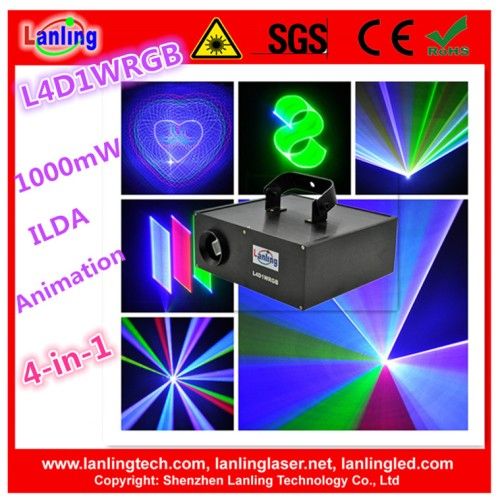 1.1W 4-in-1 4D RGB ILDA Animation Laser Lighting 2.4 efffects in 1 3.1W RGB, red 300mW, green 100mW, blue 700mW 4.10Kpss 5. Auto, Sound Active, DMX512, PC ILDA in and out