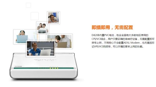 D820B which complies with ADSL, ADSL2 and ADSL2+ standards is an ADSL terminal with one Ethernet port. It supports up to 24Mbps downstream rate and 1Mbps upstream rate, as well as Bridging function. When used independently, it enables a single PC to access Internet through dialup; when connected to a router, it enables multiple PCs to share Internet access. In addition, 6000V enhanced lightning-proof design for lighting-intensive areas effectively elongates the device's life time; Wide voltage range design specially adapts to areas with unstable voltage. With stable performance, exquisite appearance and great compatibility, it is the best choice for SOHO and small enterprise users to access the Internet.