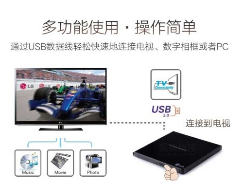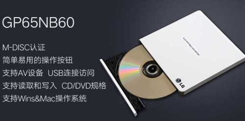 The black GP65NB60 Portable USB External DVD Burner and Drive from LG allows you to read and write on DVDs and CDs with your computer. This drive connects to your Windows or Mac computer via USB. It features 8x DVD and 24x CD read and write speeds. To offer a better movie experience while watching a DVD, this drive provides Silent Play technology, which automatically adjusts the read speed to reduce its noise level. In addition, this drive supports TV connectivity with optional hardware. It also has Jamless Play so you can watch videos continuously by skipping over erroneous data or damaged areas of the disc that may stop your video. Furthermore, this drive can use M-Discs, which provides data protection by using a patented rock-like recording surface instead of organic dye to etch your data onto a disc. Along with the drive are software programs that include Power2Go, PowerBackup, YouCam, LabelPrint, and Norton Internet Security (60 days).