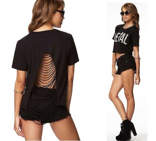 Product Name 2015 short blouse,lady tops sexy hollow fringed halter t-shirt with asymmetrical hem