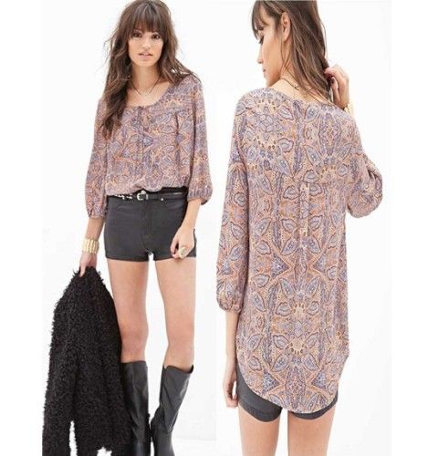 Product Name Hot sale blouse in 2015 round neck lanternsleeve chiffon top