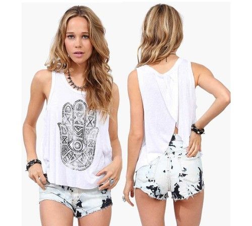 Product Name 2015 latest fasion round neck pattern printing layered halter vest loose lady top