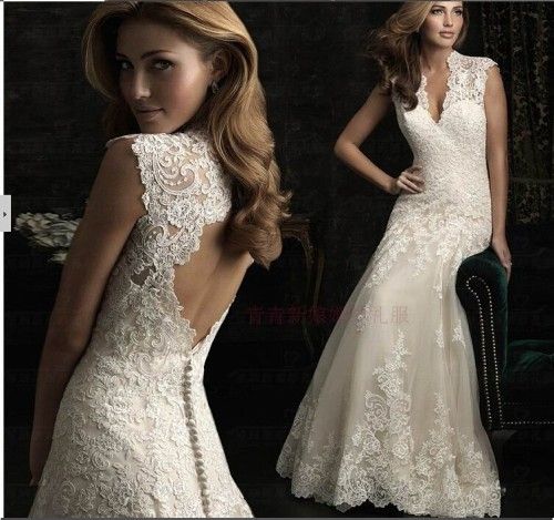 2015 New Mermaid Floor-Length V-neck Lace bridal wedding dresses (ALSW012)