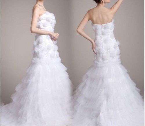 Tulle folowers bridal wedding dresses (NWD1007) 1. Reasonable price 2. Free color and size 3. Skillful handwork 4. Fast delivery Wedding dress Products Specifications Condition: Brand new Color: White, ivory or Size: Standard size and Customer size Fabric: Satin(heavy satin, stretched satin), chiffon, taffeta, tulle, organza, crepe, net fabric, imitated silk lace and so on. Embellishment: Exquisite silver/gold thread embroideries, Miyuki beads, crystals, diamands, Nippon sequins, beads&pearlsearlsearls Lace/Zip back Zip up, Lace up or Side Zip up Silhouette: Mermaid, A-Line, Ball gown, Sheath/Column, Plus size/over size HemlineT-length, knee-length, floor-length, Sweep train, Chapel train, Semi-cathedral train, Cathedral train, Royal train available Lead time: 7---15 days for samples dress order, 45--60 days for bulk order. Packing: PP bags&Cartonsrtonsrtons ShippmentEMS, TNT, DHL, UPS and so on; Need 3-7days Contract Manufacturing OEM Service Offered, Design Service Offered, Buyer Label Offered