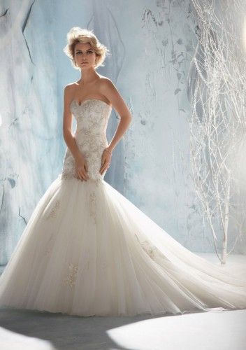 Beaded Embroidered Appliques on Tulle mermaid fishtail bridal wedding dresses