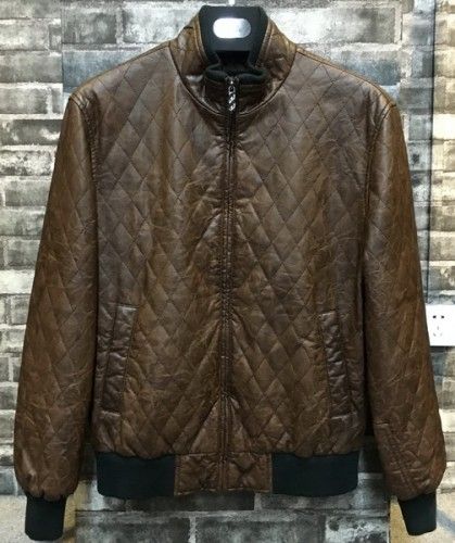 Man diamond quilted bomber pu leather jacket