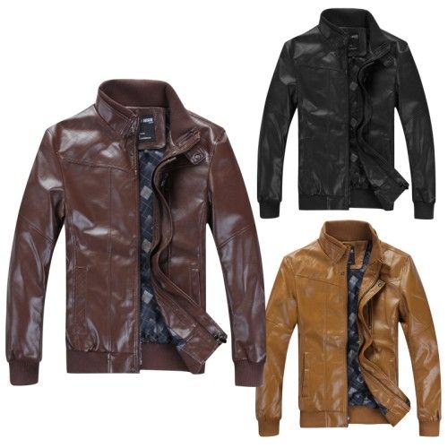 Men Printed Lining PU Leather Fashion Casual Jacket