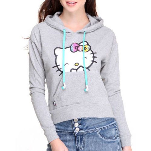 Ladies Hoodie Grey Hoodie with Headphones