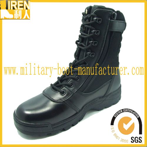 Side zipper black military army boots