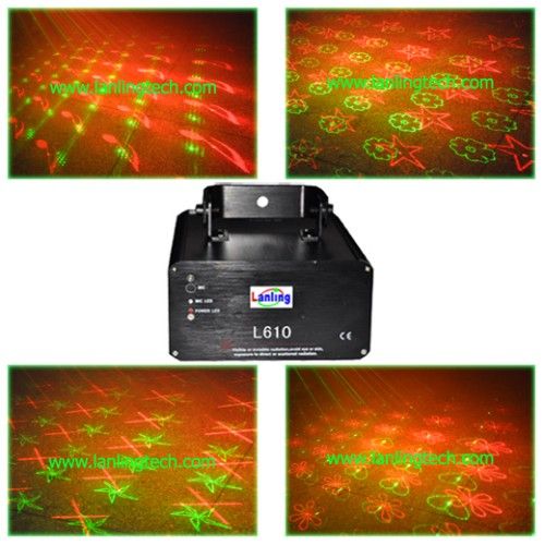Mini laser show system/DJ light - L610RG Description 150mW Multi Twinkling Effects Laser Light Feature Advanced new program makes many unique perfect laser effects, such as quincunx, pentagram, musics, hearts, falciform, firefly, big crossed stars, etc. The left is red and the right is green. Laser beam angle at 40-60 degrees. Rotational direction and speed, frequent flashing and plane scanning control effect. Scanning Micro-step motor scanning at big angle Laser Green: 50mW 532nm DPSS Red: 100mW 650nm DPSS laser Total power: 150mW Play Mode Sound Active, AUTO, DMX, Master/Slave DMX channel: 6 with the function of ' BLACK OUT'CK OUT"" Interface 3 pins XLR jack for DMX or Maser-Slave linking Power Supply Bi-Voltage 110V to 220V-250V, 50/60Hz, 20W Gross Weight Kg (inner box), Kg (outer box) Volume Weight Kg (/5000) or Kg(/6000), each inner box Kg (/5000) or Kg(/6000), each outer box Inner Box 342*167*263(0.015m³ )up3; )up3; ) Outer Box 357*354*566(0.072m³ ), 4PCS/cartoncartoncarton Accessories Included: User' s Manual Power Supply Cable (UK, USA, EURO, AUS, BRZ). Applicable Place DJs, Bands, Bars, Pubs, Clubs, KTV, Family party, etc. Customized OEM, ODM