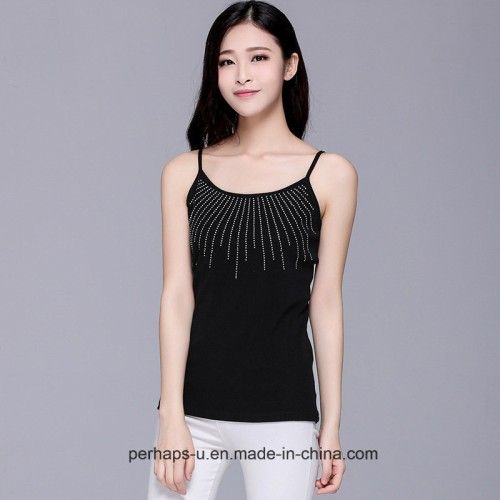 Good Quality Womens Fitness Singlet with Rhinestone on Chest