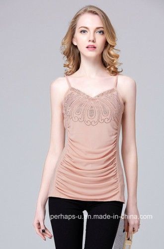 | Product Name | Hot sell womens voile singlet with rhinestone on chest |