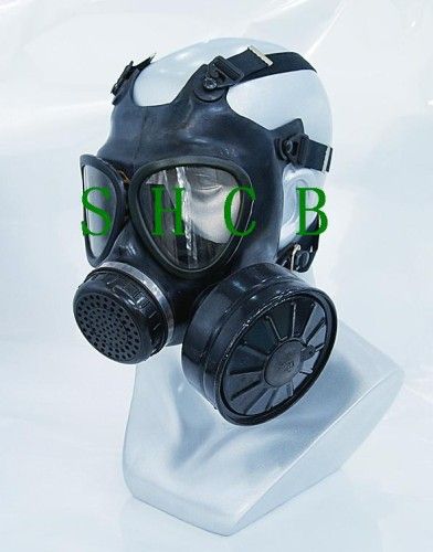 The CB10579 gas mask is uniquely designed and directly canister-attached gas mask capable of effective protection of the user's facial skin, eyes and respiratory organs in the CBR contamination environment, the face piece of the mask if suitably soft, voice-transmissible, and with a reliable in-turned seal lip to fit the wearer's face and adjustable elastic head-harness straps to ensure comfortable wearing and face sealing. Triangular, cylindrical lenses are made of optical plastics and especially surface-treated to incorporate good optical properties, and wear and shock resistance.