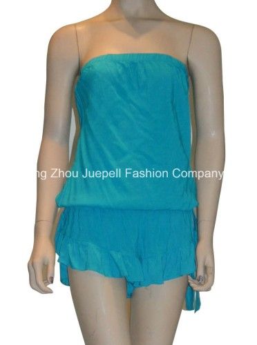 Woven Rayon Rufflesd Strapless Sexy Women Jumpsuit