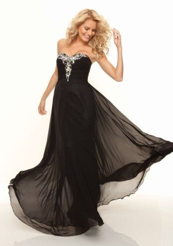 Beaded chiffon A-line black long formal evening dresses