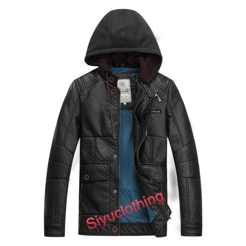 Men Leather Hoody Casual Fashion Warm Winter Clothing Waterproof Jacket (F-1633)