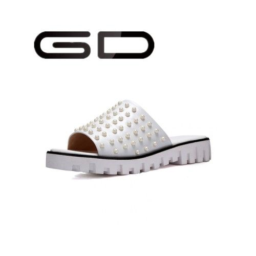 Gdshoe Open Toe Black and White Platform Pearl Slipper