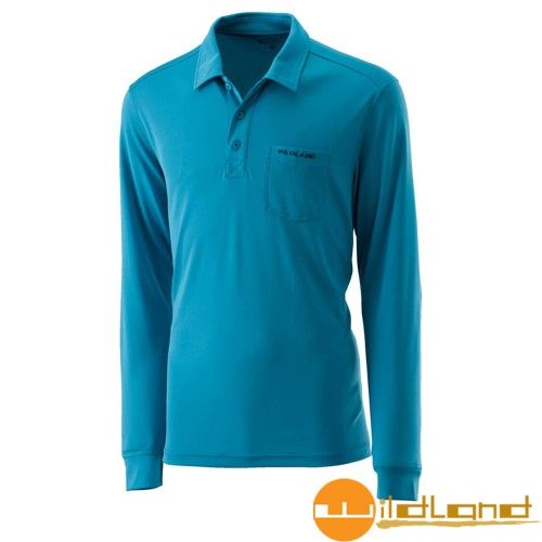 'Wildland wilderness' men' s hydrophobic yarn POLO long - sleeved blouse blue 0A21632 anti - UV | perspiration | quick - drying | outdoor |