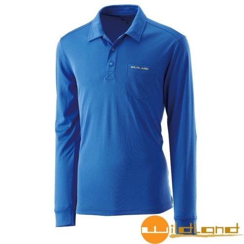 'Wildland wilderness' men' s hydrophobic yarn POLO long - sleeved shirt sea blue 0A21632 anti - UV | perspiration | quick - drying | outdoor |