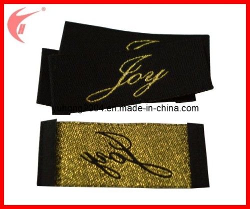 Produce Name: Woven label, garment label, satin label, metallic yarn woven label with end fold. Printed label, woven badge, woven patch