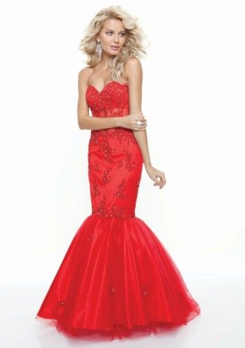 2015 latest new fashion style lace beading mermaid tulle red prom dresses
